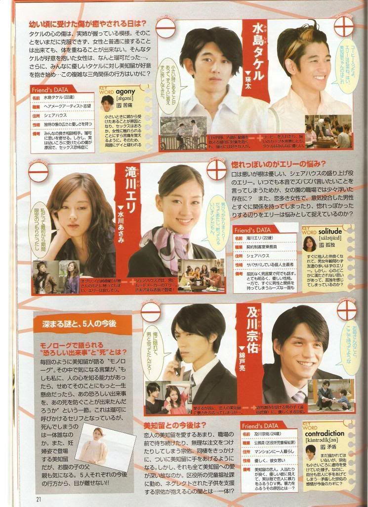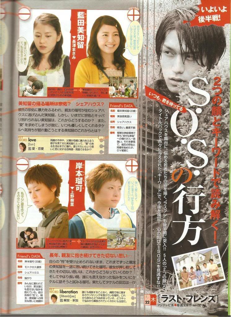but in japan, the DV parts are generating more feedback and interest than the whole ruka-in-love-with-michiru thing.... we might feel that the DV part is redundant (actually i hate it too)... but at the other end of the spectrum you have some japanese viewers thinking that adding a GID (erm. Gender Identity Disorder) theme is uncalled for. because it is a fact that DV is a wayyy more common (and serious) problem over there than something like GID. if you take a look at the responses on the last friends website, 'sosuke' or DV appears in almost every comment....