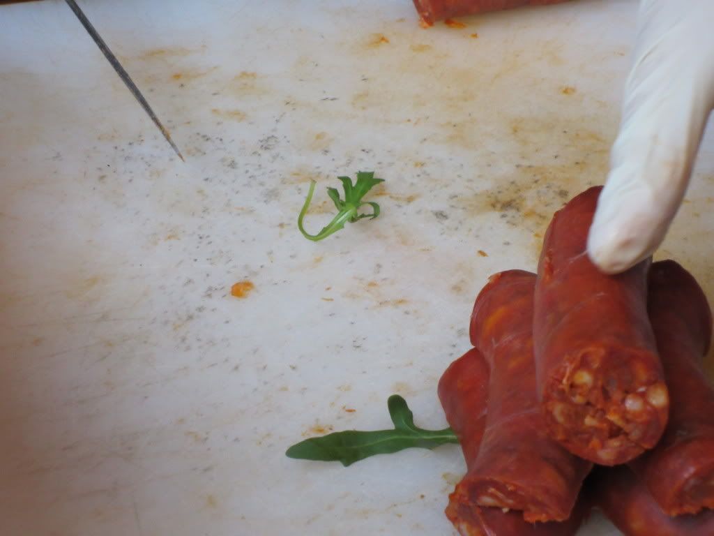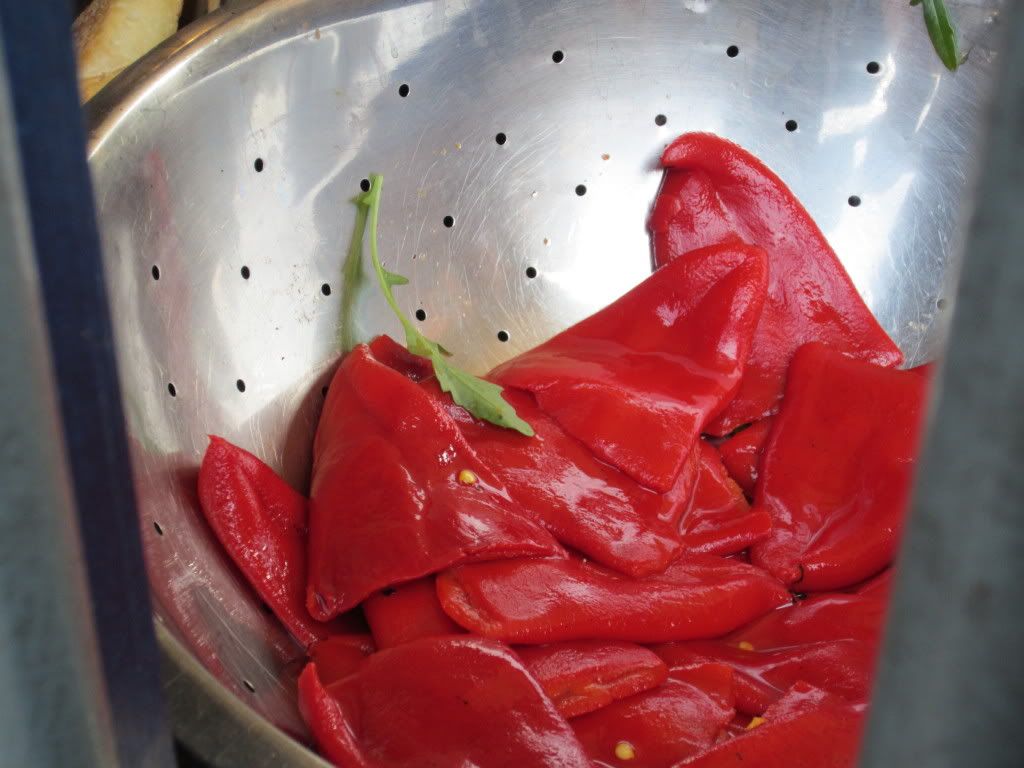 BBQ Chorizo sausage, Spanish Piquillo peppers, Arugula, and bread dressed with olive oil. Simply sublime!