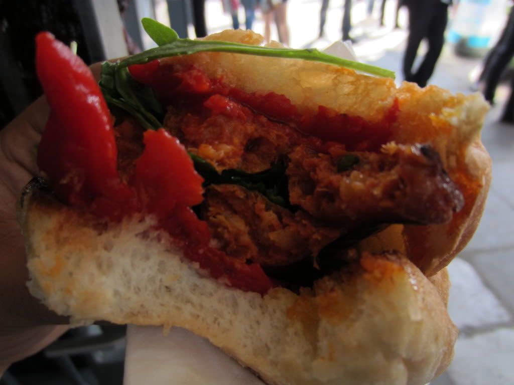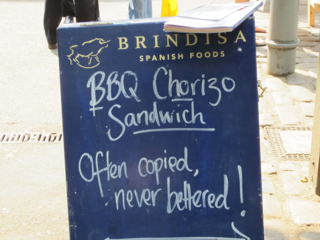 Celebrating the awesome weather on April 21, 2011, I headed out for London's Borough Market - the city's premier farmer's market. I took a trip down memory lane and opted to have the same Chorizo sandwich I had there back in 2008!